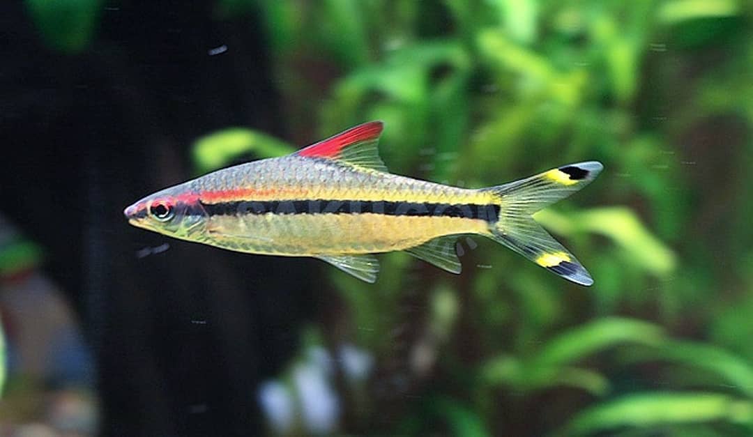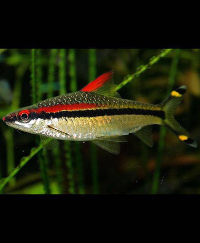 Зуб Денисона известен под разными именами. Вы можете увидеть ее помеченной как Roseline Shark (хотя технически это не пресноводная акула), Red-Line Torpedo Barb или даже Miss Kerala.