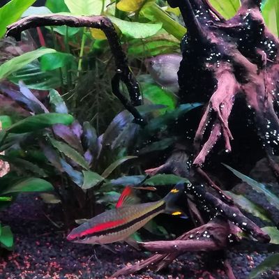Барбуса Денисони трудно назвать неприхотливой рыбкой. Чтобы создать для нее комфортные условия придется потрудиться. Рыбок жизненно необходимо содержать стайками из 8-10. Одиночное содержание вызовет у этого барбуса сильнейший стресс и резко сократит продолжительность жизни. Минимальный объем аквариум для такой стаи должен быть не менее 200 литров.![]()