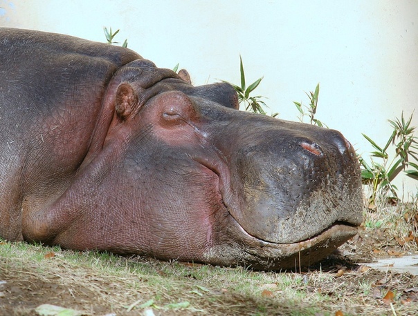 1) Бегемоты — большие полуводные млекопитающие , с большим бочкообразным телом, короткими ногами, коротким хвостом и огромной головой! У них сероватая или грязно-коричневая кожа, которая под ней плавно переходит в бледно-розовый цвет.