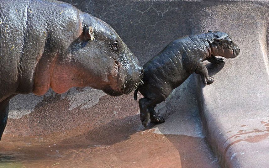 Карликовые бегемоты немного меньше по размеру и весу. Оба вида живут в воде большую часть времени и имеют перепончатые пальцы, которые помогают им двигаться по воде. Их носы и уши расположены так, что они могут оставаться прямо над водой, когда отдыхают на мелководье. Бегемотов можно найти в Восточной Африке, хотя раньше они были распространены на большей части Африки.