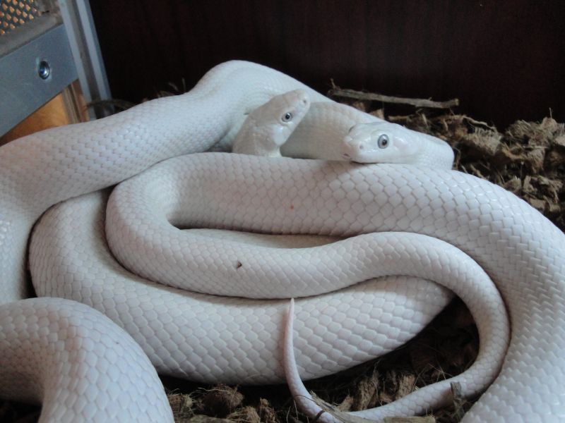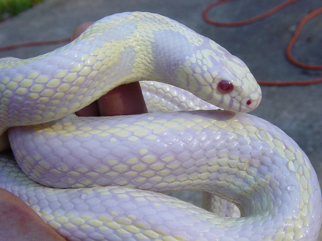 Это один из редчайших видов змей с белой кожей и голубыми крупными глазами. В длину достигает 1,8 метра. Обитает этот вид в Америке и в южной части Канады. Иногда можно повстречать неподалёку от городов. Питается крысиный полоз грызунами, птицами, лягушками. Полозы не ядовитые змеи, но все же весьма агрессивны, в особенности во время линьки. Агрессию проявляют в тот момент, когда чувствуют опасность и загнаны в угол. Живут эти особи в среднем 17 лет.