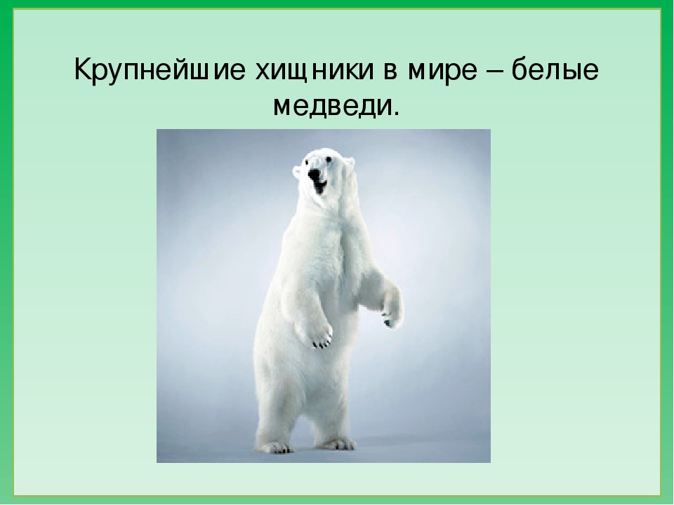 Белых медведей (или Ursus Maritimus — чтобы дать им шикарное латинское название) можно найти практически в любом месте за Полярным кругом — в Канаде, России, Гренландии и т. Д., И они являются крупнейшими живыми наземными хищниками с самцами массой 400-600 кг и суки 200-300кг.В среднем их рост составляет невероятные 8,5 футов (у мужчин) и 6,5 футов (у женщин).