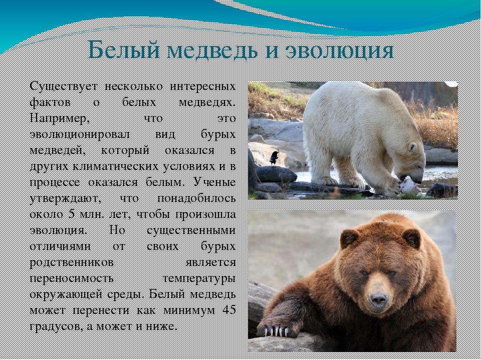 2. Белые медведи «порвали» со своими бурыми кузенами около 5 миллионов лет назад. У белых медведей начали развиваться уникальные характеристики, которые помогают им выжить в холодной Арктике.