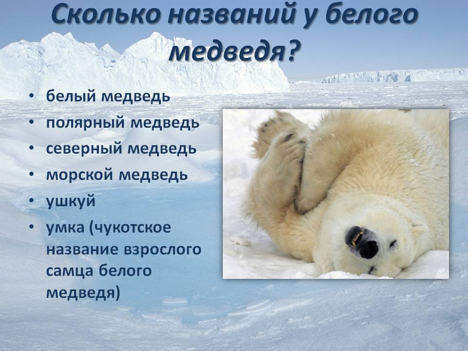 1. Несмотря на то, что белые медведи обычно рождаются на суше, большую часть жизни они проводят в море.Их официальное название Ursus Maritimus, что означает «морской медведь».