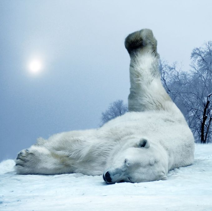 16. После хорошей еды и тщательной уборки белые медведи любят вздремнуть, часто в забавных, почти человеческих позах.