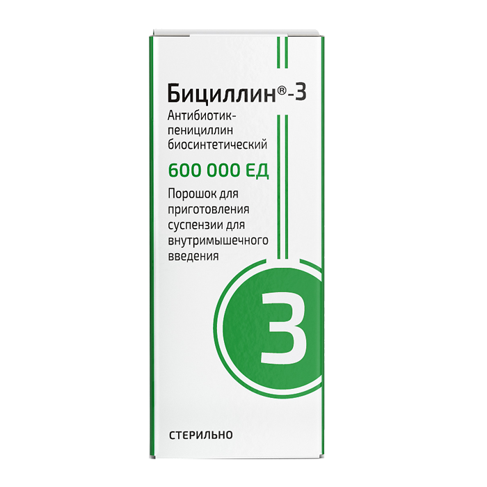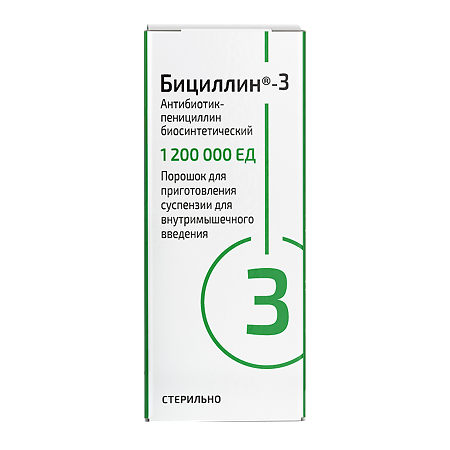 Бициллин – это препарат пенициллина пролонгированного (длительного) действия. Выпускается во флаконах по 300 000 ЕД, 600 000 ЕД и 1 500 000 ЕД (Бициллин – 1, Бициллин – 3, Бициллин – 5). Это порошок белого цвета.