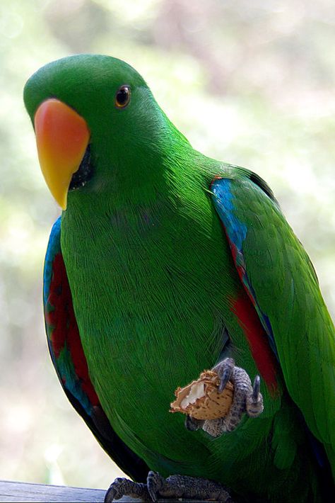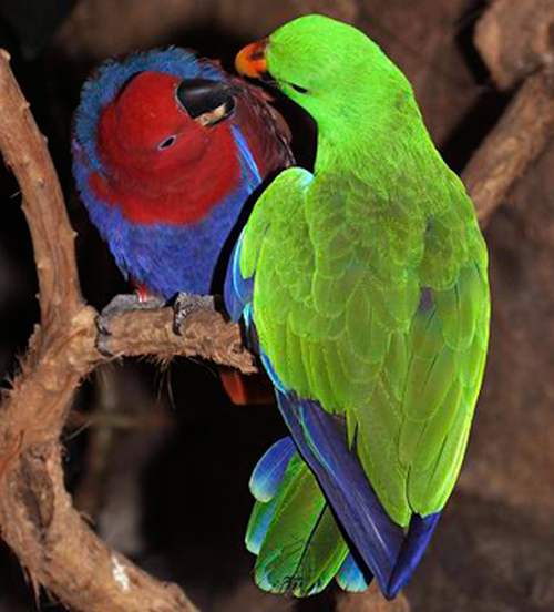 Некоторые считают эклектусов скучными, унылыми и глупыми животными. На самом деле это не так. Многие орнитологи согласны с тем, что представители этого вида гораздо умнее тех же жако или ары.