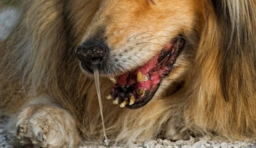 На языке животного скапливается белый налет, проявляются потемнения на зубах. Полностью теряется аппетит, собака очень слабеет, возможны обмороки.