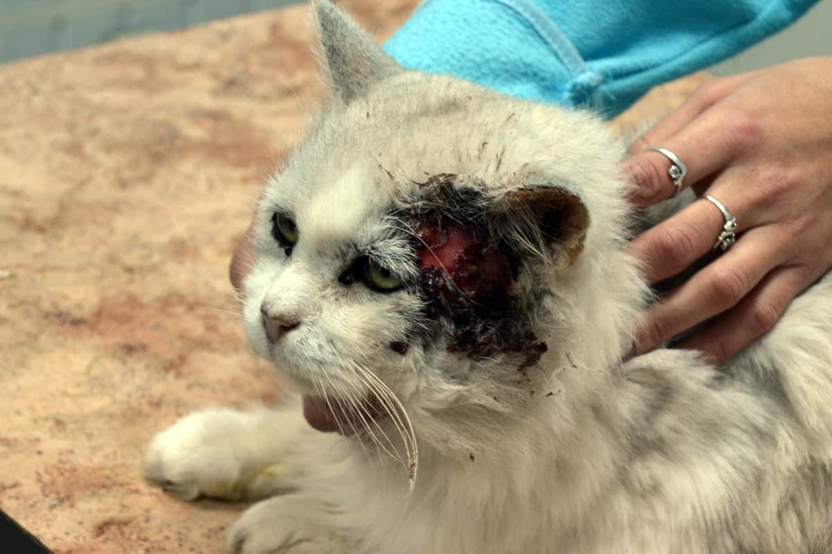 Это явление начинается с краев ушей, затем переходит на лобную часть головы и шею, а в самом тяжелом случае захватывает все тело несчастного животного.