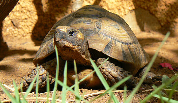 Есть крупная сухопутная черепаха и в северной Африке – это шпороносная черепаха. Длина панциря некоторых особей достигает семидесяти пяти сантиметров, а масса – пятидесяти килограмм.