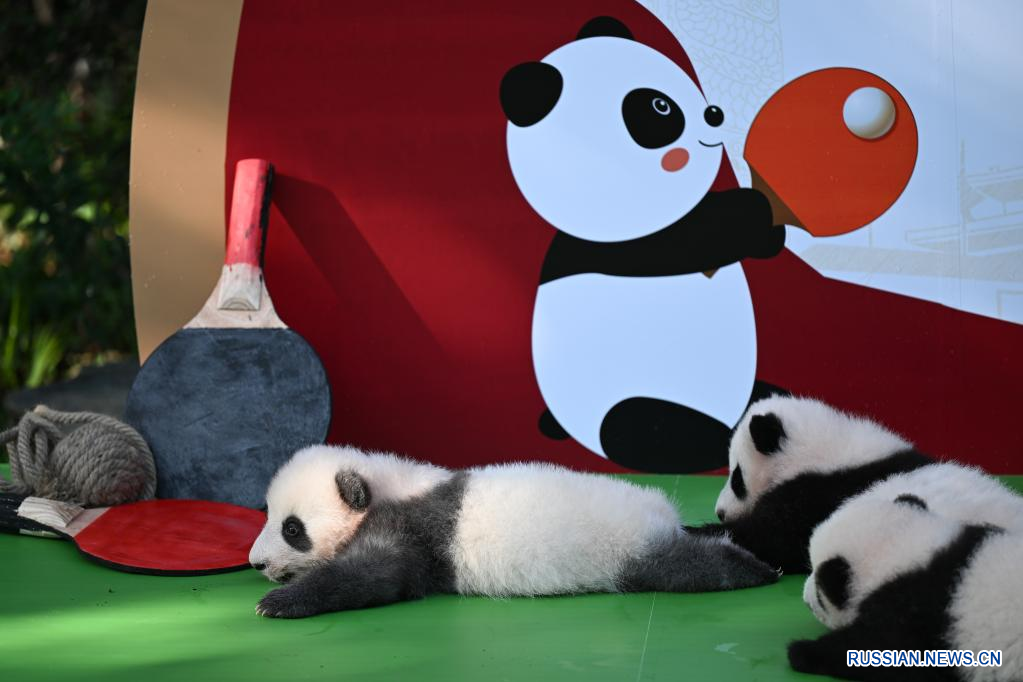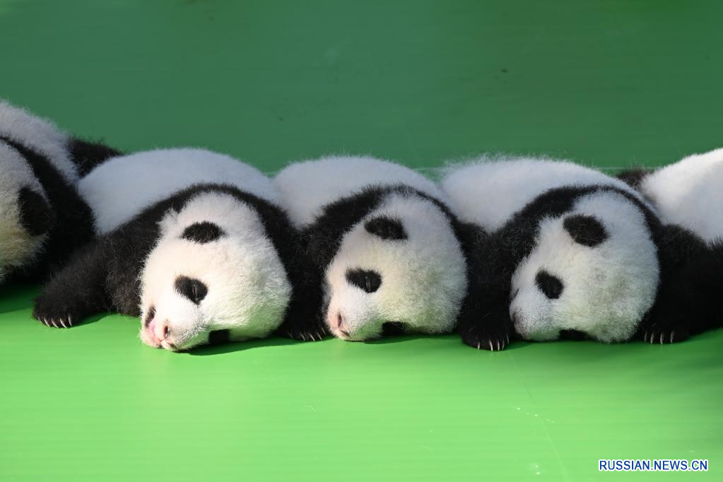 45 пандами (из них 24 взрослых, 16 малышей и 5 совсем крошечных,