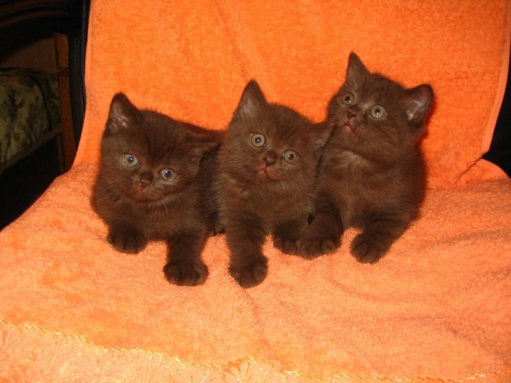 Шоколадные британские котята и британские котята окраса циннамон — визуально коричневые. Но шоколад — это насыщенный темный тон, подушечки лап и зеркальце носа в тон шерсти. Очень люблю эти темно-коричневые кожаные носики. Шоколадный окрас имеет тон от светлого до темного-темного, почти черного. Как молочный и горький шоколад. Когда мы учили в детстве цвета на английском языке, был у нас такой стишок: