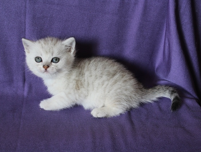 У нас родилась очаровательная серебристая затушеванная кошечка-страйт от Киры (Еврочемпион WCF) и Ultra Lensky Alpachino .