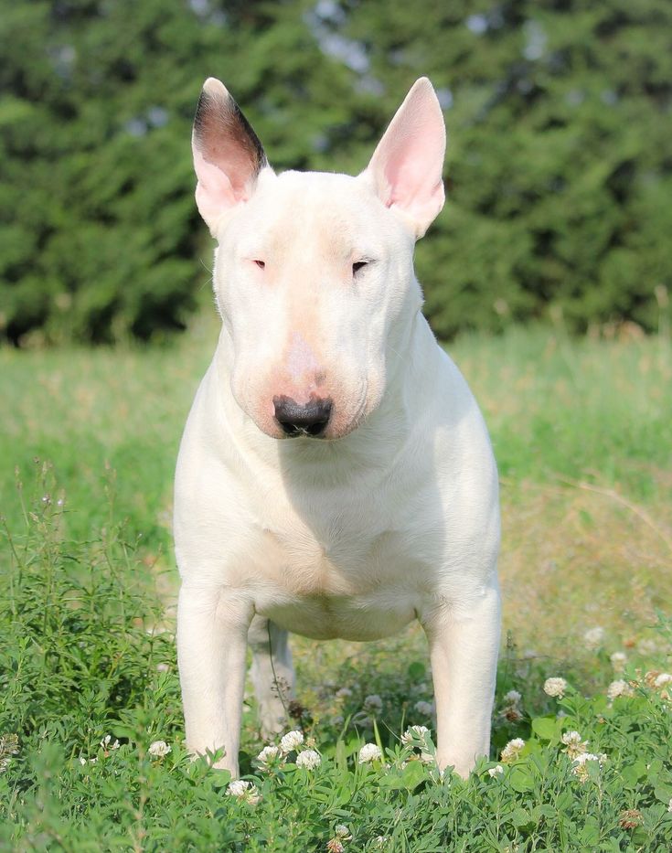 У бультерьеров часто встречается наследственная глухота, особенно у белых собак.