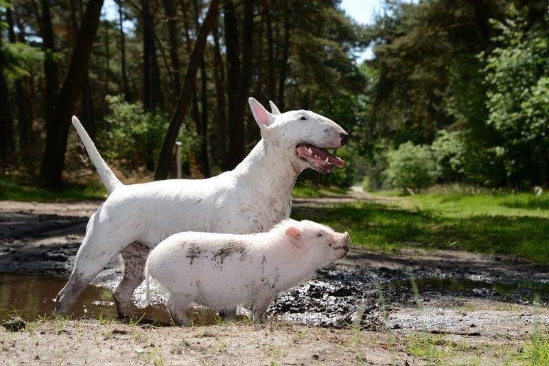 Английский бультерьер хорошо ладит с кошками?