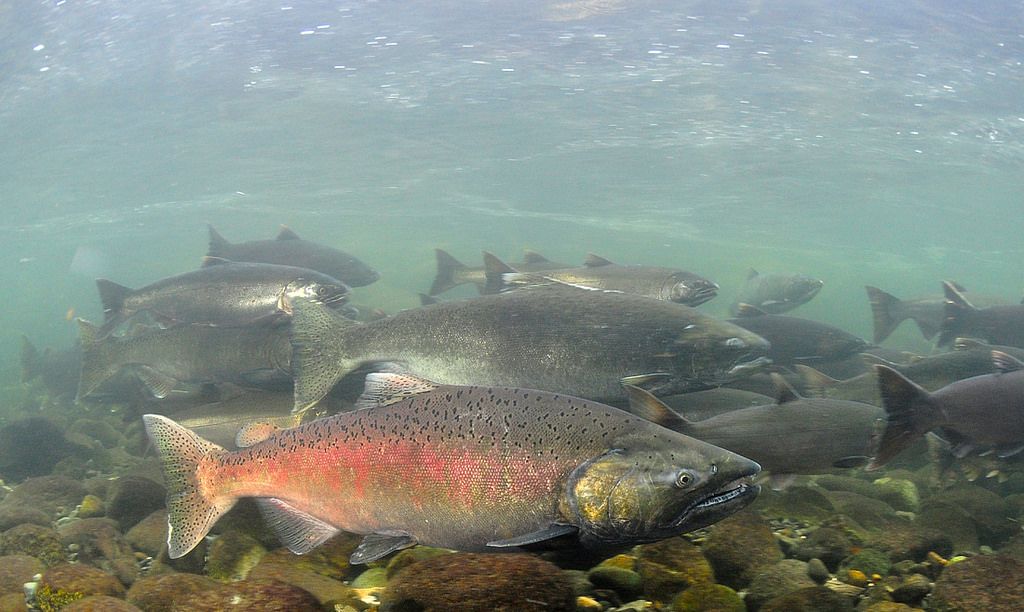 Чавычи движутся вверх по течению