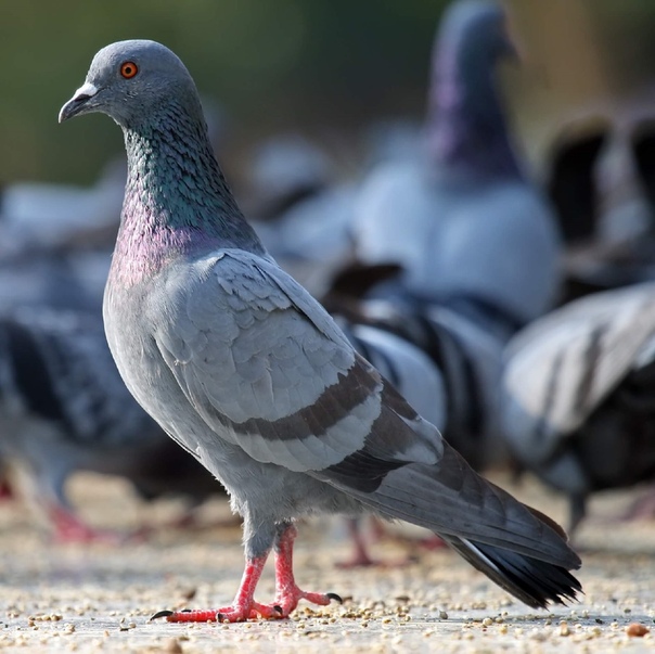 Голубей бывает много разные цвета и виды. Более 20 видов можно найти в дикой природе и в плен. Перья на шее голубя — наиболее часто переливающиеся и называется «взломом». Если вы держите самцов и самок, они часто будут выглядеть одинаково, но у самцов перья на шее перья более радужные.