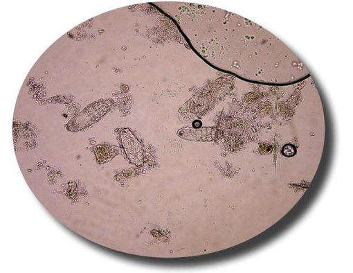 Гистологическое исследование показало, что качество воспалительной реакции связано со стадией деградации клеща. Все подкожные клещи были окружены гранулематозным панникулитом, эти данные согласуются с данными D’Amico et al. [18]. Когда экзоскелет не был поврежден, воспаление было легким-умеренным.Но в случае сломанных экзоскелетов наблюдалась тяжелая воспалительная реакция. У одного хорошо сохранившегося клеща наблюдалось острое и местное механическое раздражение дермы и эпидермиса. Это может быть признаком того, что клещ недавно проник под кожу. Внутренняя часть интактного экзоскелета клещей содержала смесь клеточного мусора, и клеточная структура не была распознана, что может объяснить, почему выделение ДНК не было успешным.