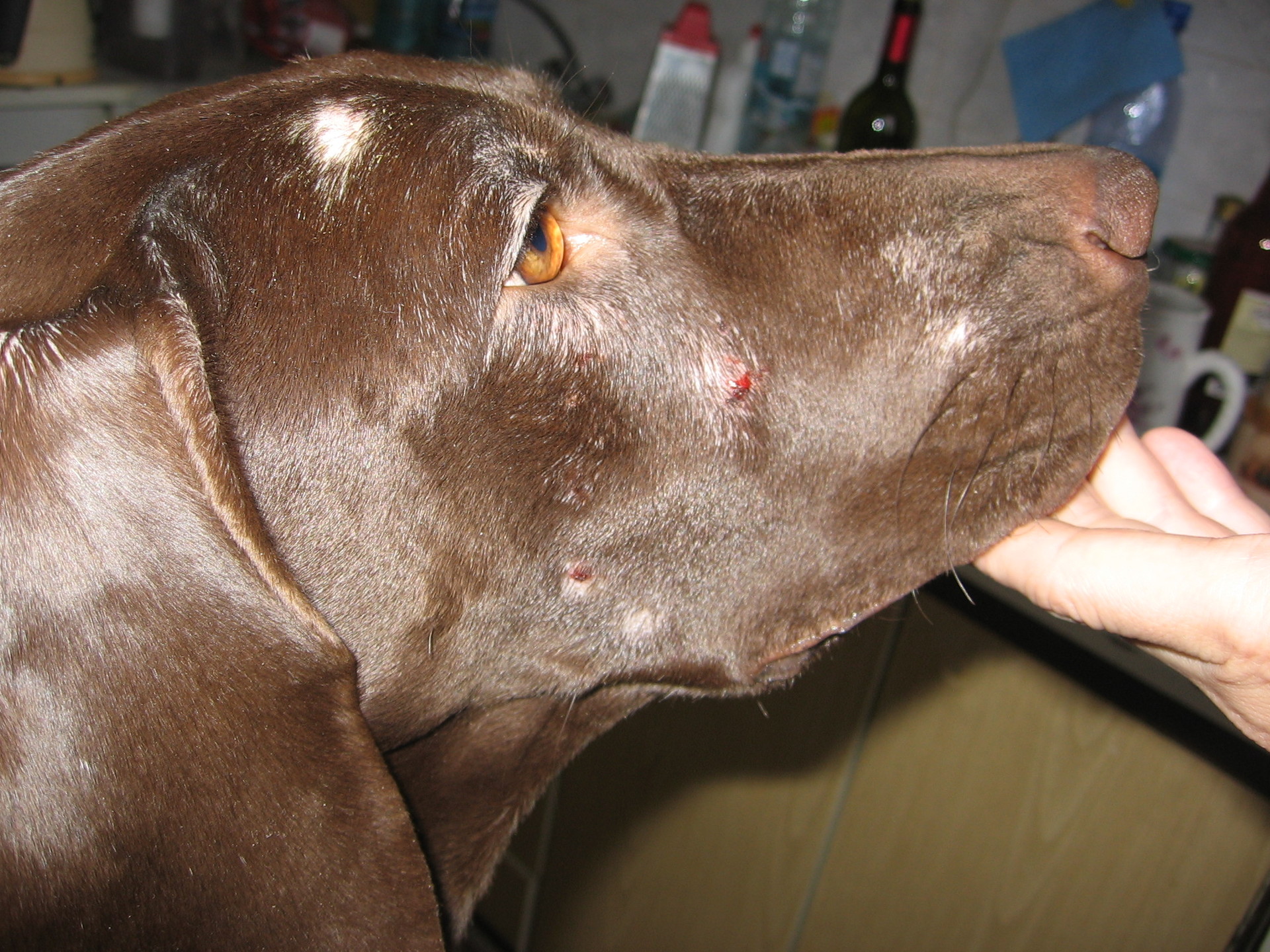 Вот такие малоприятные чувства появляются у собаки, когда у нее завелся подкожный клещ.