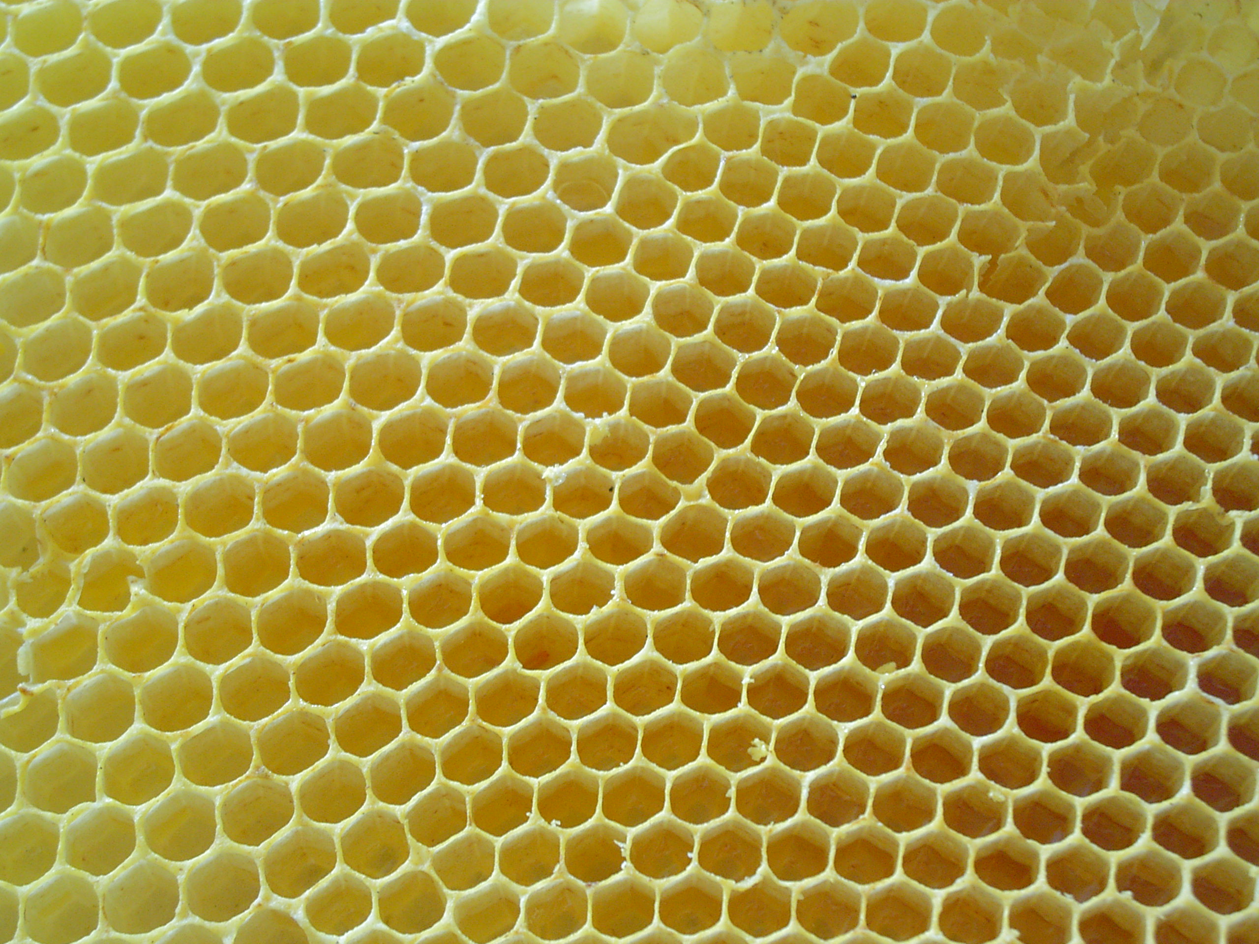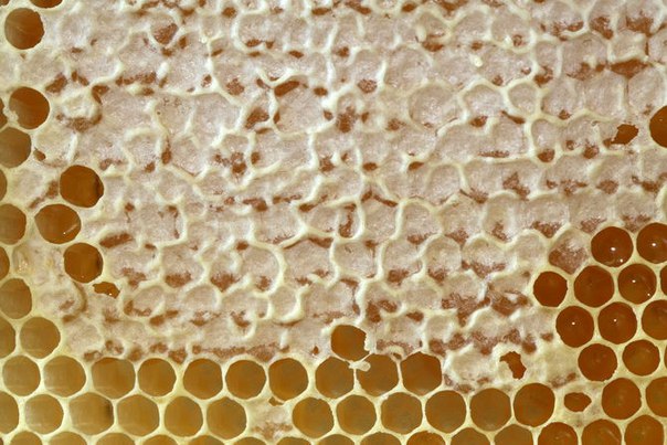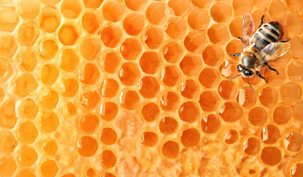 Каждая парафиновая ячейка представляет собой идеальный шестиугольник, шесть его тонких сторон обеспечивают не только прочность сотовой структуры, но и лучший способ хранения меда.![]()