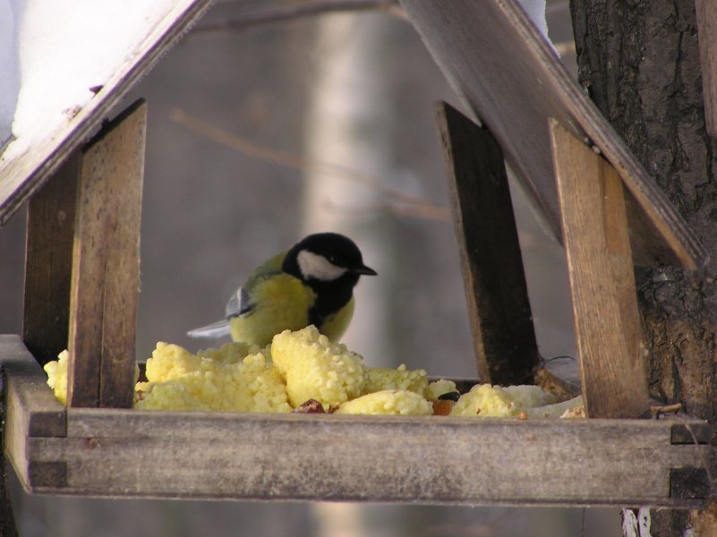 Что касается набора кормов, то Союз охраны птиц России для синиц и других насекомоядных рекомендует несолёное сало любых животных, нежареные семечки подсолнечника (они очень калорийны) и тыквы (в меньшей степени – семена арбуза, дыни и крошки белого хлеба). Традиционное пшено или отходы серого хлеба они не едят. Этот корм привлечёт лишь вездесущих голубей и воробьев. Кстати, заготавливая семена арбуза, дыни или тыквы, не забудьте промыть их водой, а затем высушите, чтобы не образовывалась плесень.