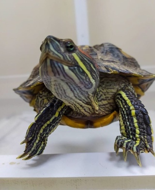 Красноухая черепаха – это быстрая и подвижная представительница семейства пресноводных черепах, получившая свое название характерному околоушному пятну красного цвета, которое присутствует в окрасе большинства подвидов.