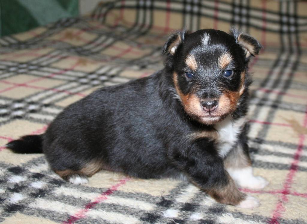 В 1 месяц у песика появляется рефлекс виляния хвостиком. С этого же времени кроху начинают подкармливать творогом или другими нежирными кисломолочными продуктами.
