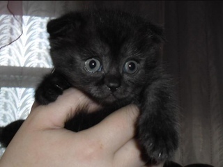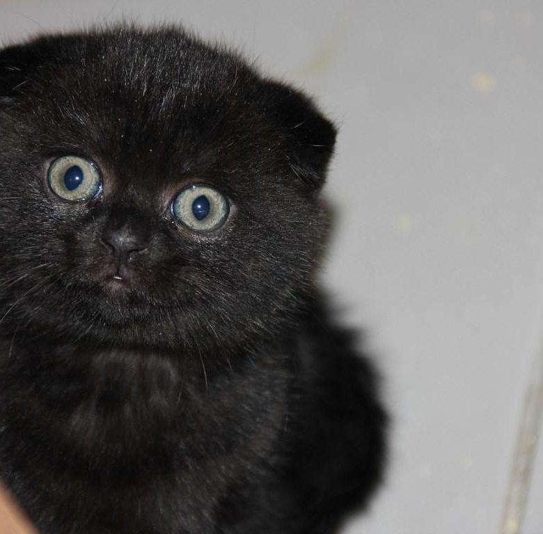 Черные вислоухие шотландские коты традиционно получают медную или медово-янтарную радужку глаза. В аборигенных породах допускается и зеленый цвет, но шотландцы к этой группе не принадлежат.