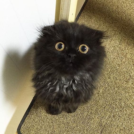 Черные персидские коты очень пушистые, их шерсть может достигать до 10 см в длину, а на воротнике до 20 см. Вдобавок у этих котов очень густой подшерсток, за счет чего они выглядят еще более объемно. Поскольку персы малоподвижны, то они похожи на черное пушистое облако, которое изредка потягивается и безучастно наблюдает за внешним миром своими огромными, широко распахнутыми круглыми глазами. Но такое поведение абсолютно нормально, это особенность данной породы.