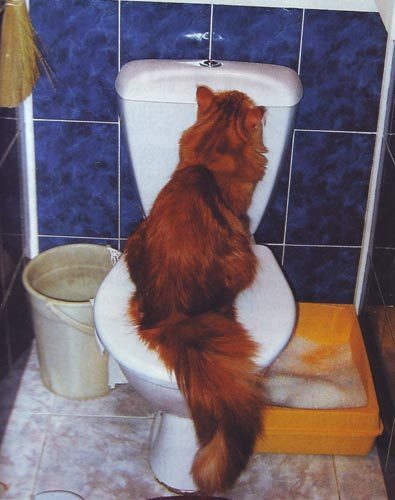 - Еще одна местная кошка доминирует над туалетным лотком, и ей некуда идти.