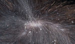 - Жирная – характеризуется образованием колтунов, шерстка становится неопрятной и сваливается в комки, покрывается сальной пленкой. Если почесать кожу, чешуйки не будут осыпаться, а останутся под ногтями хозяина.