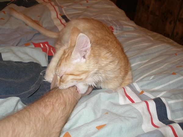 - Котенок укусил руку, не выдергивайте, а, наоборот, прилезьте ее ближе. Данное действие должно удивить питомца и он ослабит челюсть.