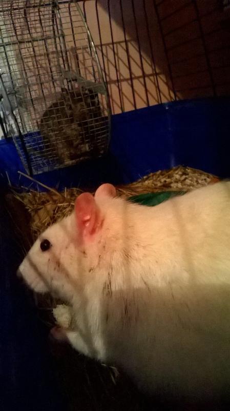 При проживании вместе грызуны будут сражаться за территорию.В подавляющем большинстве, согласно отзывам владельцев, победа остается за крысой, но и поедает его. Рекомендуется селить животных не просто отдельно друг от друга, желательно, даже поместить их в разных комнатах.