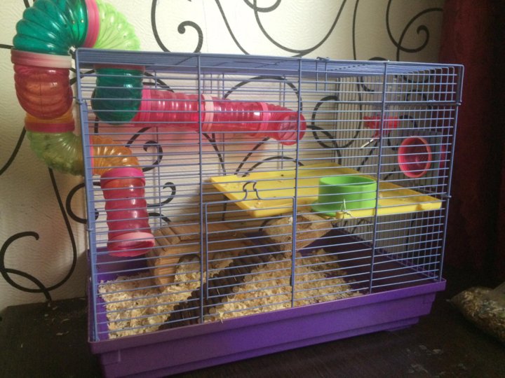 Минимальный размер — 50х30х25 см. Лучше, если это будет многоуровневая модель, оборудованная разнообразными игровыми элементами — полочками, лесенками и тоннелями. Рекомендуется выбирать клетку с металлическими прутьями — так грызун не сможет сбежать из нее. Оптимальное расстояние между прутьями — 0,5 см.