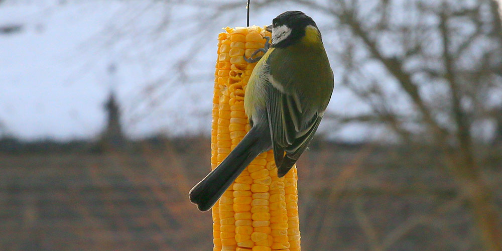 В холодный период года синицы регулярно наведываются в кормушки. Так как зимой птицы расходуют много сил на поддержание температуры тела, полезнее всего предлагать им максимально калорийную пищу – семена подсолнечника и тыквы, сало, сливочное масло, творог и сливки.