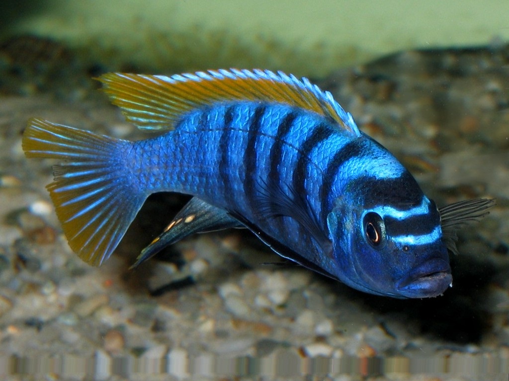 Опубликовано 19 апреля 2015 г. Кобальтовая голубая зебровая цихлида (Metriaclima callainos) родом из песчаных отмелей и более глубоких каменистых вод озера Малави, Африка, и известна тропических рыб, насчитывающих энтузиастов, таких как кобальтово-голубая, кобальтово-голубая цихлида, зебра малавийская цихлида, кобальтово-голубая мбуна и кобальтовая зебра.