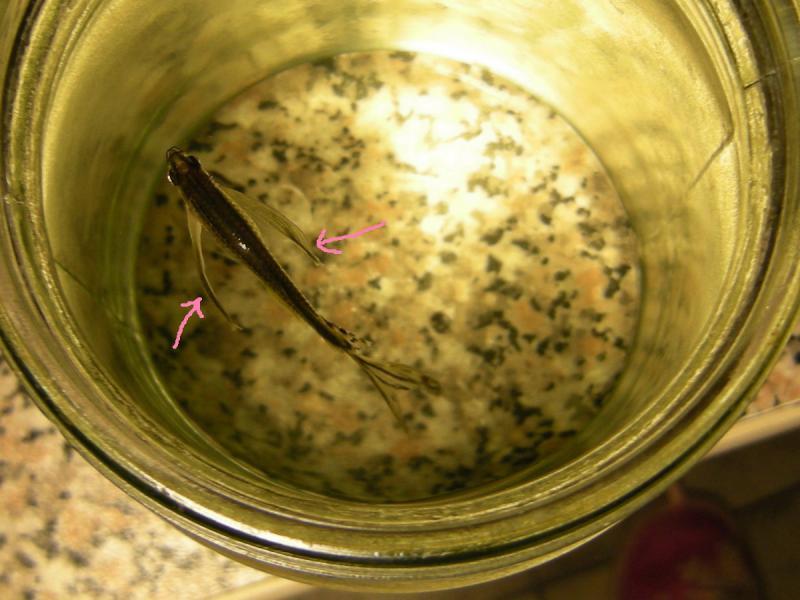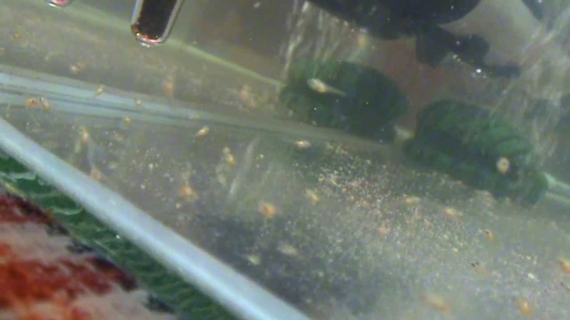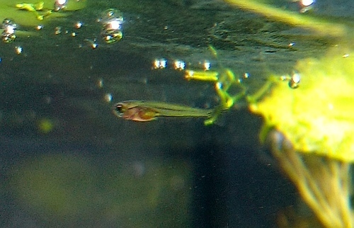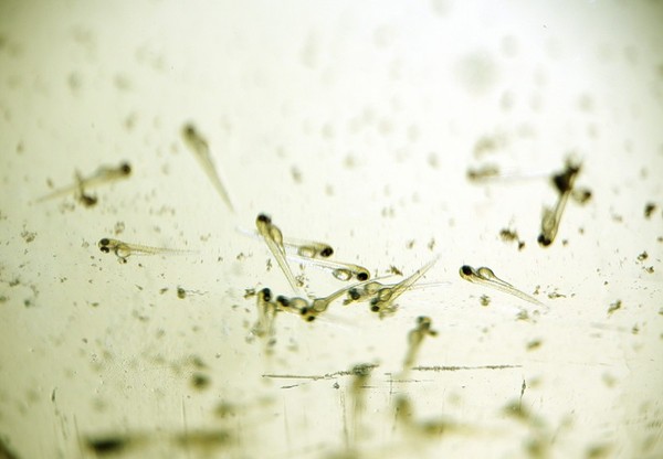 Появившиеся мальки очень маленькие и полупрозрачные, их с трудом можно различить. В первые несколько дней они не плавают, находясь на одном месте и питаясь остатками своего желточного мешка.