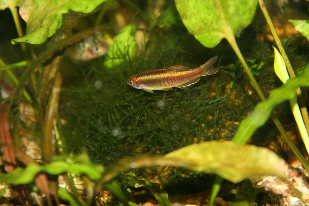 Данио Золотое колечко (Danio tinwini) – единственные из данио, которые плавают по всей толще воды. По золотистой поверхности тела беспорядочно размещены золотые кольца и черные пятна. Брюшко серебристое, плавники прозрачные с темными вкраплениями.