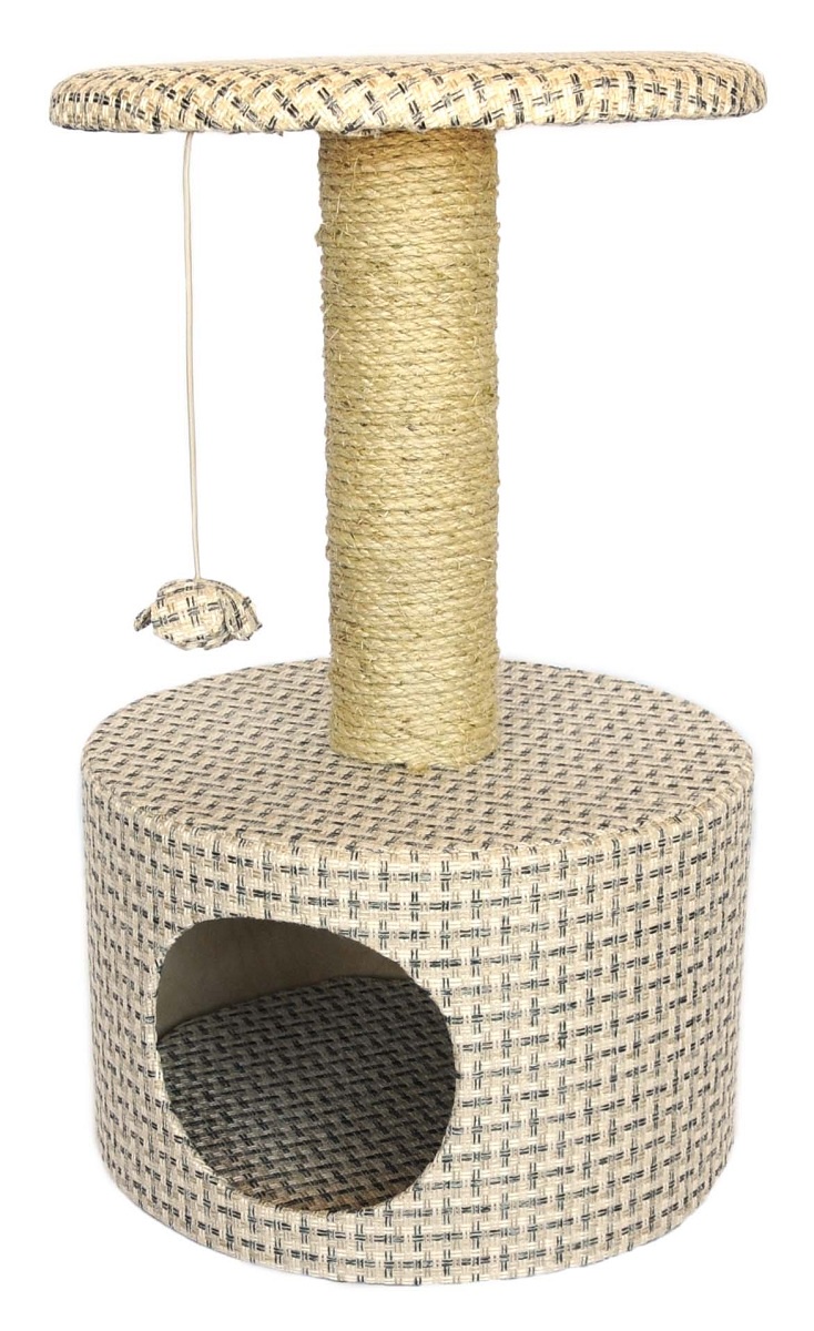 Материал всей многослойной квартиры — цельная сосновая древесина отличного качества, а столб сделан из сизалевой веревки, что служит отличным мотивом для царапин, побуждая кошек жаждать их еще.