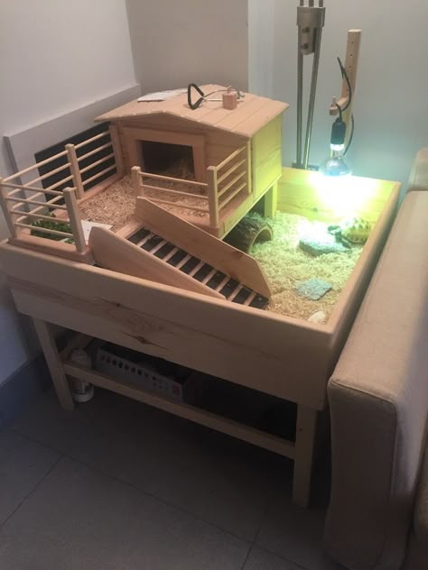 Предпоследний шаг — поставить самодельный дом на то место, где он впоследствии останется. Во-первых, вы должны расстелить пленку для пруда на земле. Фольга должна иметь немного большую площадь, чем домик. Полезен избыток около пяти сантиметров с каждой стороны. Область фольги затем щедро засыпается почвой, которую лучше всего утрамбовать. Как только это будет сделано, просто поместите сборку сверху и осторожно, но твердо постучите по ней молотком. Оставшимися досками или планками его можно дополнительно закрепить по бокам. Кстати, пленка для пруда выполняет важную функцию: защищает от холода и влаги из земли. И еще в связи с теплом важно другое: домик нужно ставить в вольере так, чтобы он был не в тени, а на солнце.