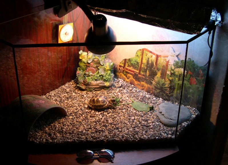 Известно, что черепахи — хладнокровные животные. Они не способны согреться только своим телом. Это неизбежно приводит к тому, что для них особенно важна температура окружающей среды. Она не должна опускаться ниже значения 20 градусов по Цельсию. Однако на открытом воздухе это может иметь место чаще весной и осенью. Поэтому, чтобы не подвергать опасности животных в их доме, необходимо установить имеющуюся в продаже лампу накаливания.