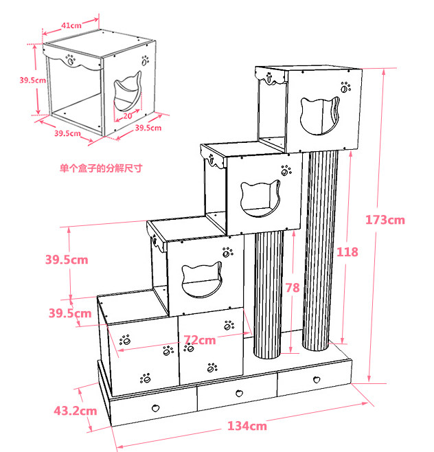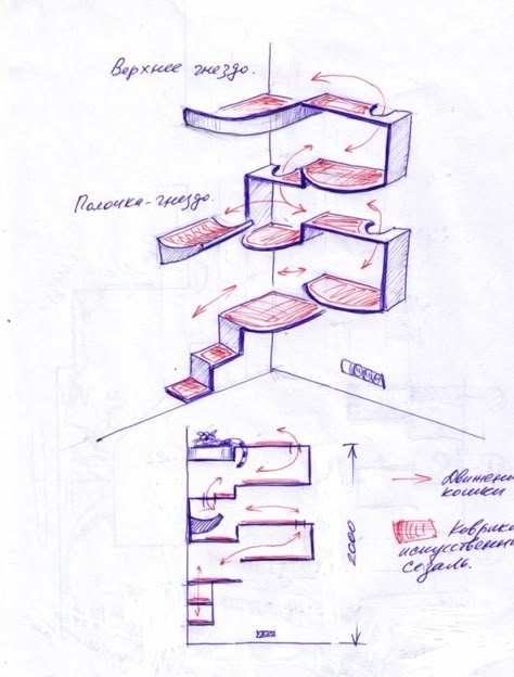 На фото видно, что высота этих конструкций находится в пределах 1 метра 80 сантиметров, а то и выше, хотя это не критично и можно запросто убрать лишние сантиметры вместе с этажами. Эти чертежи могут послужить хорошей основой для постройки домика для своей кошки. На основе имеющегося чертежа можно приступать к подготовке всех необходимых материалов, после чего можно приступать к сборке этого сооружения.