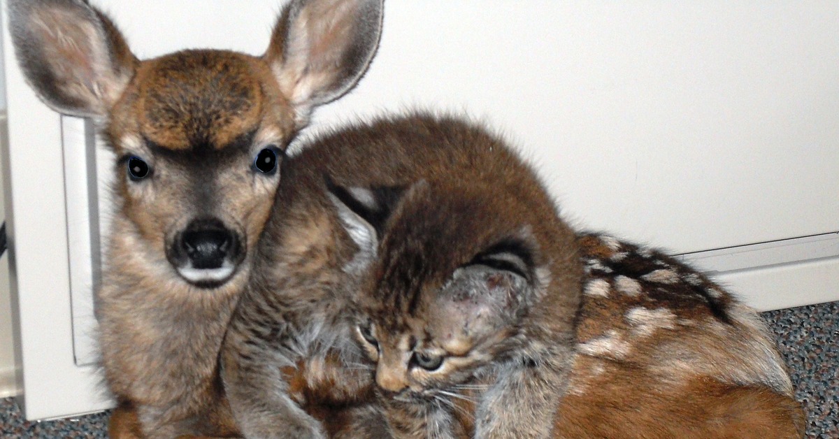 Другой человек из Огайо сделал снимок эта фотография счастливого поросенка, прижимающегося к одеялу со своим другом-олененком