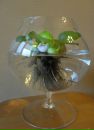 Из центра пышной, сочной розетки исходят цветоносы. Соцветие держится на растении только сутки. Мощные корни эйхорнии могут вырастать до 50 см.