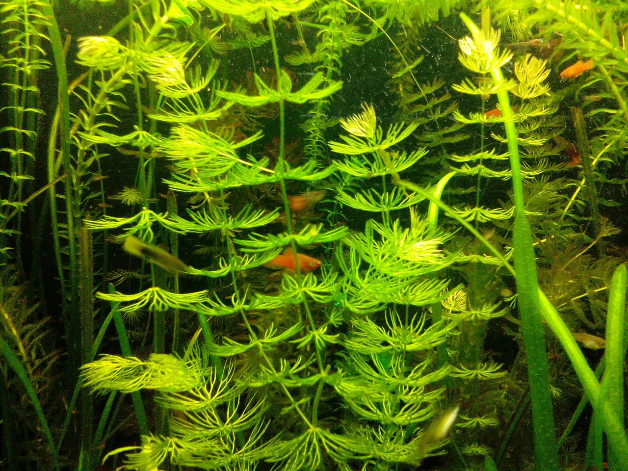 Анахарис идеально подходит для аквариумов с живородящей рыбой и ее густо растущей листья служат прекрасным укрытием для молоди рыб.
