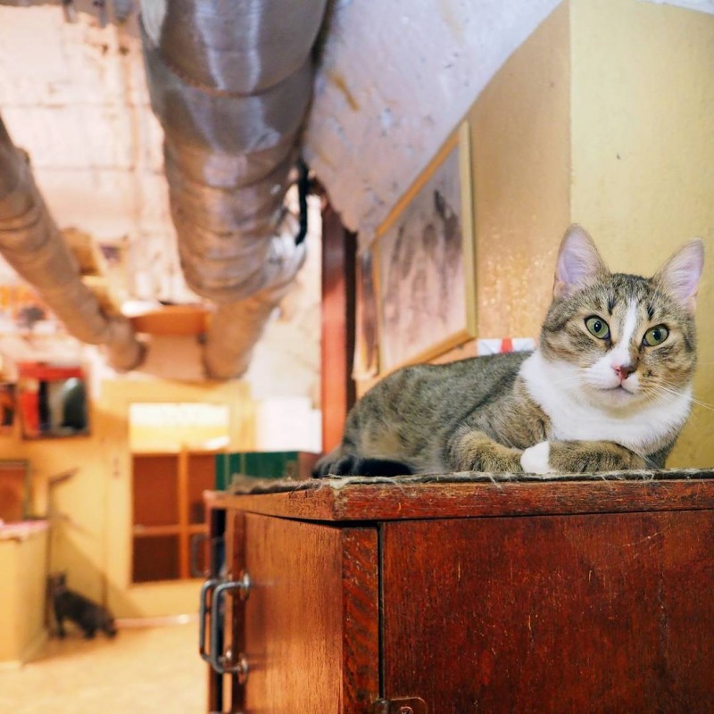 Анна Кондратьева: Как я уже говорила, не все коты в Эрмитаже уживаются в сообществе, и таким нужно подыскивать новые семьи. Арт-пространство «Республика кошек» – это место недалеко от Эрмитажа. Сюда можно прийти, выпить кофе, хорошо провести время, пообщаться с животными и узнать о них больше, а, возможно, и забрать котика домой.