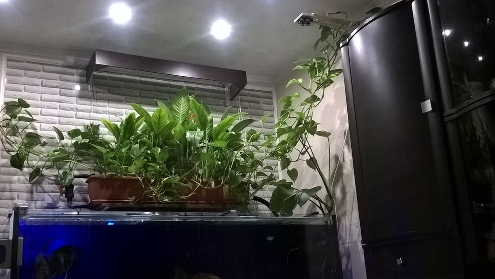 Во-вторых, размер фитофильтра и количество растений в нём можно увеличивать по своему усмотрению, в аквариум столько зелёной массы просто не поместится.