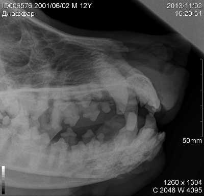 Остеосаркома полости рта развивается в основном у собак средних и крупных пород и, как правило, в среднем или старшем возрасте. Остеосаркома чаще встречается в нижней челюсти и реже в верхней . Саркому следует дифференцировать от остеомиелита, туберкулеза и кистозной дегенерации кости челюсти.