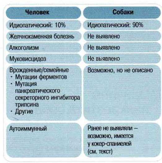 Некоторые породы также более склонны к панкреатиту, чем другие, при этом цвергшнауцеры, миниатюрные пудели и кокер-спаниели имеют самую высокую заболеваемость.