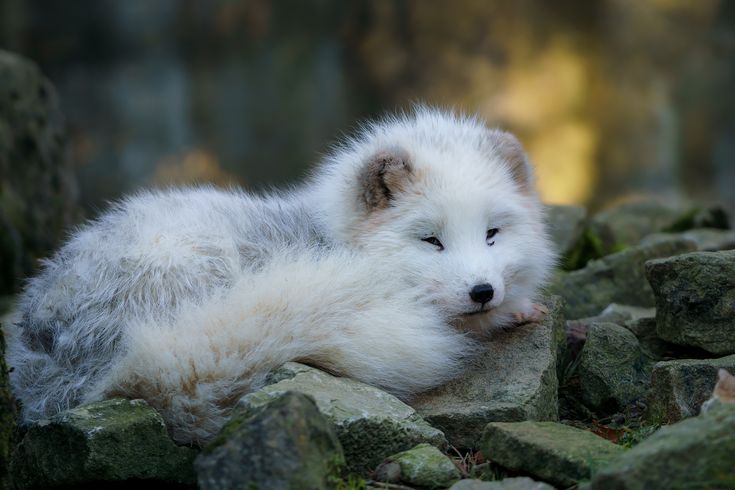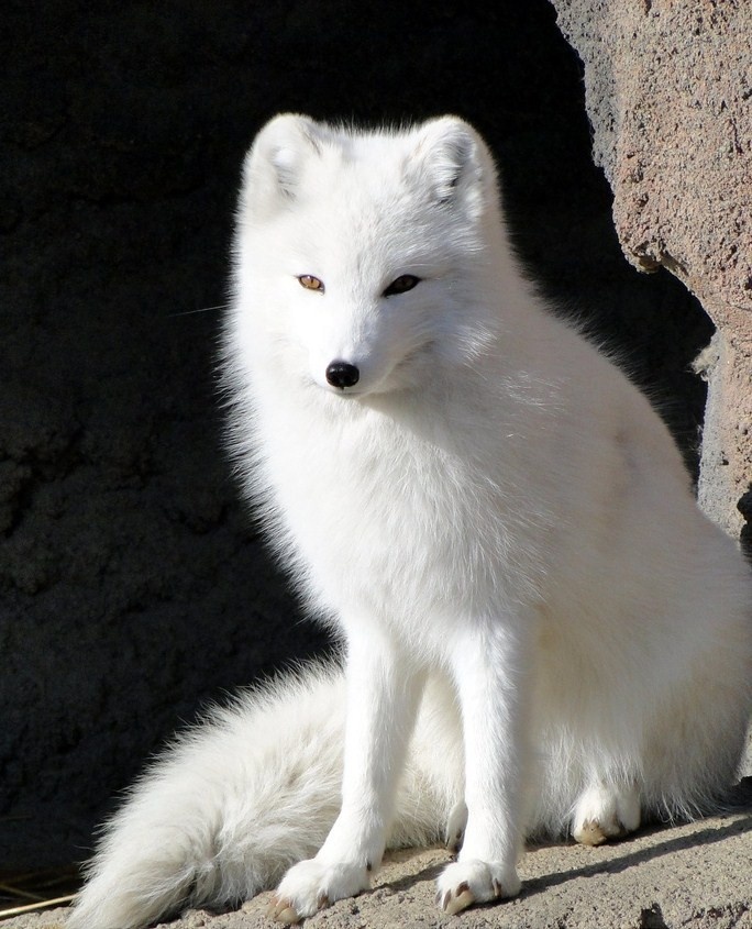 Белый песец на камняхЖивотные